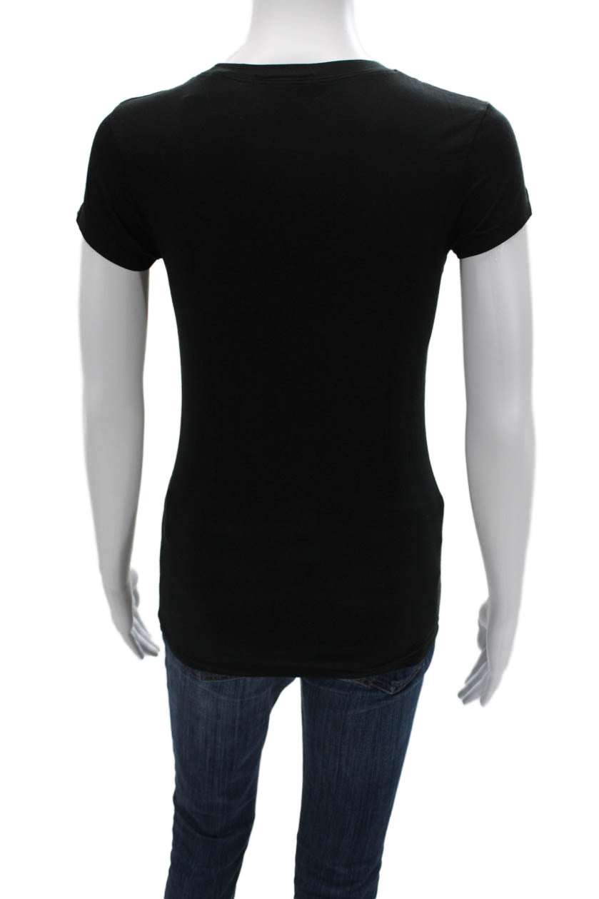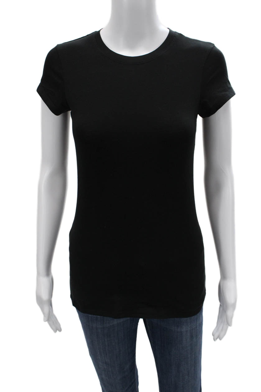 Vince Women Basic Black T-Shirt Crew Neck Short Sleeve Cotton Spandex Size S