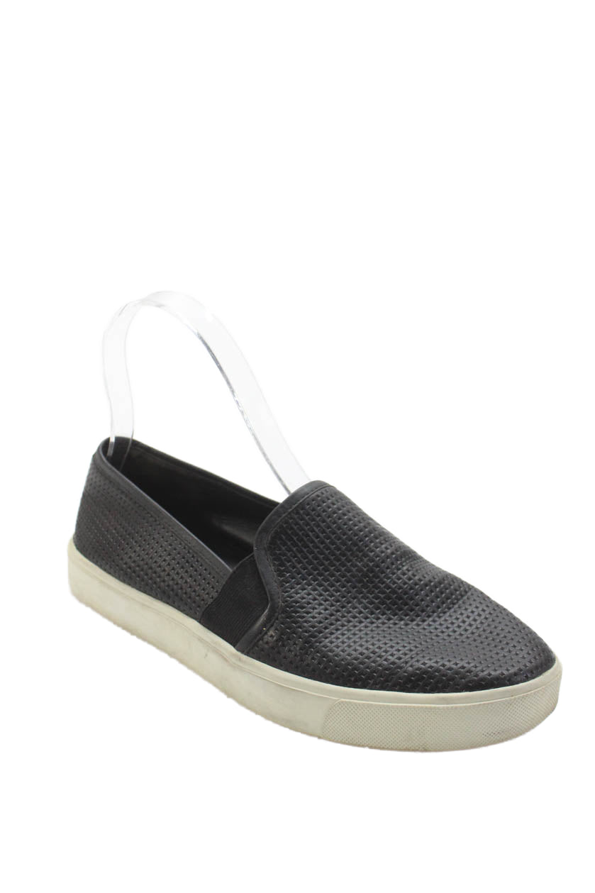 Vince Womens Leather Blair Perforated Slip-On Casual Sneakers Black Size 7