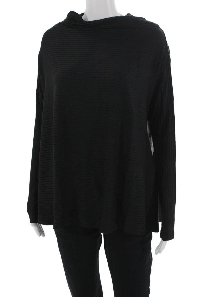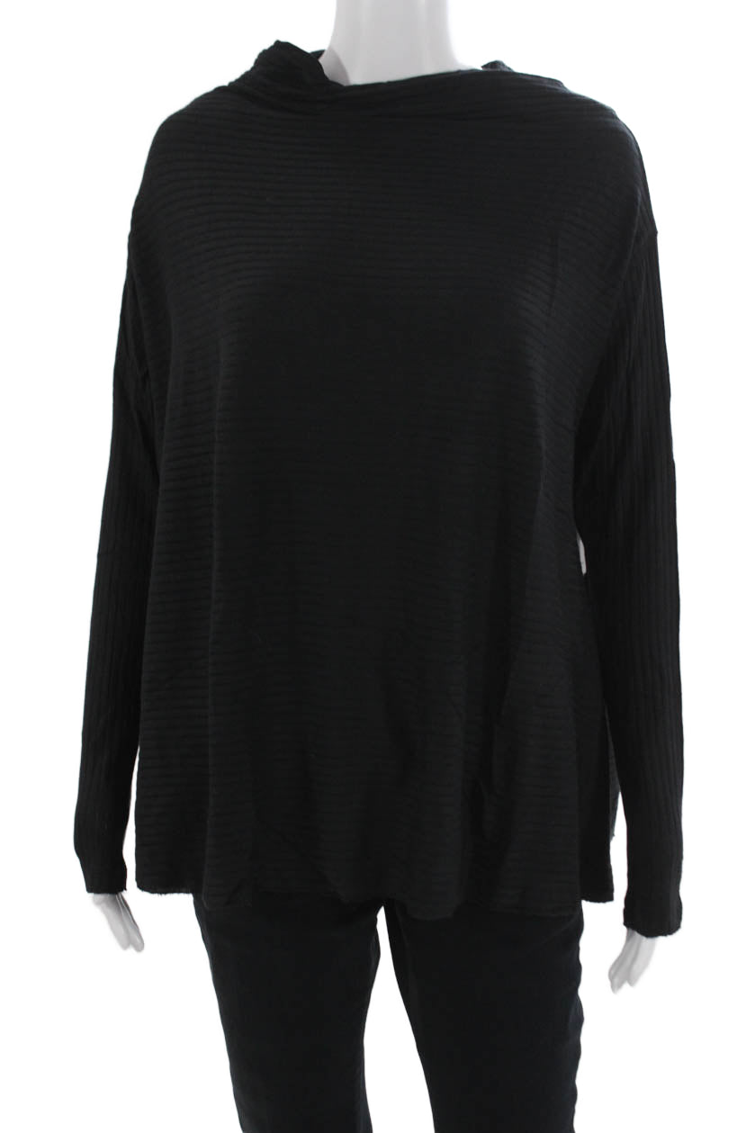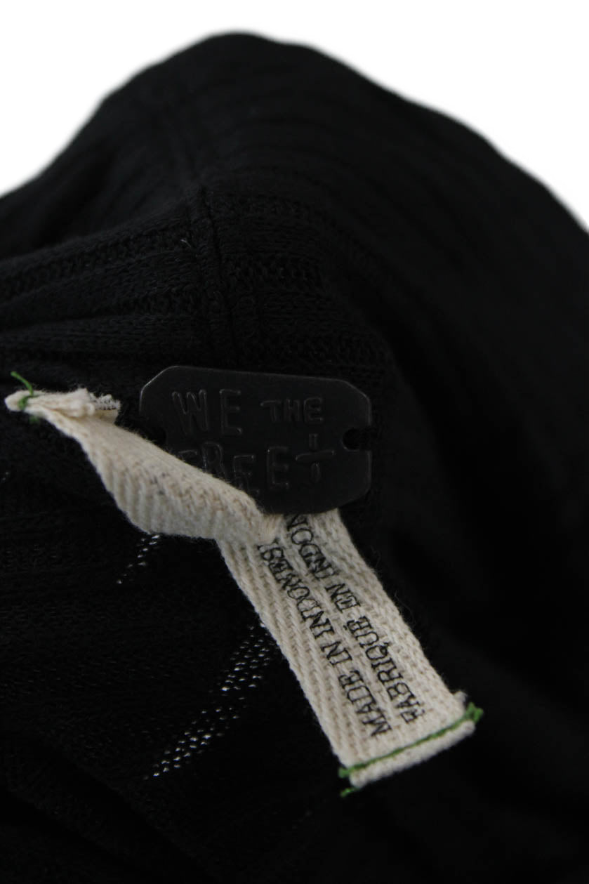 We The Free Women Mock Neck Long Sleeve Black Bohemian Basic Top Size M