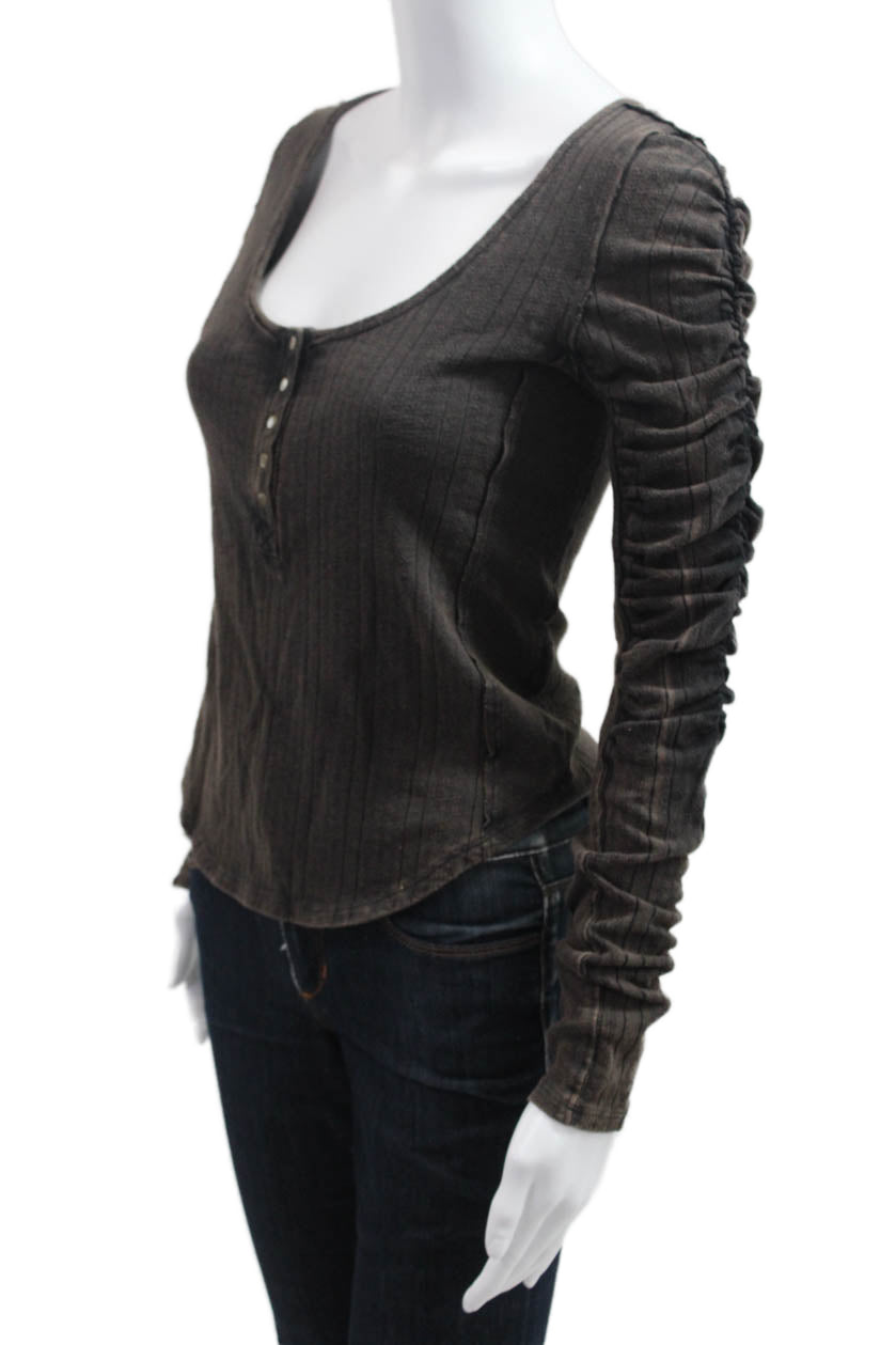 We The Free Womens Dark Gray Striped Cotton Long Sleeve T-Shirt Size XS