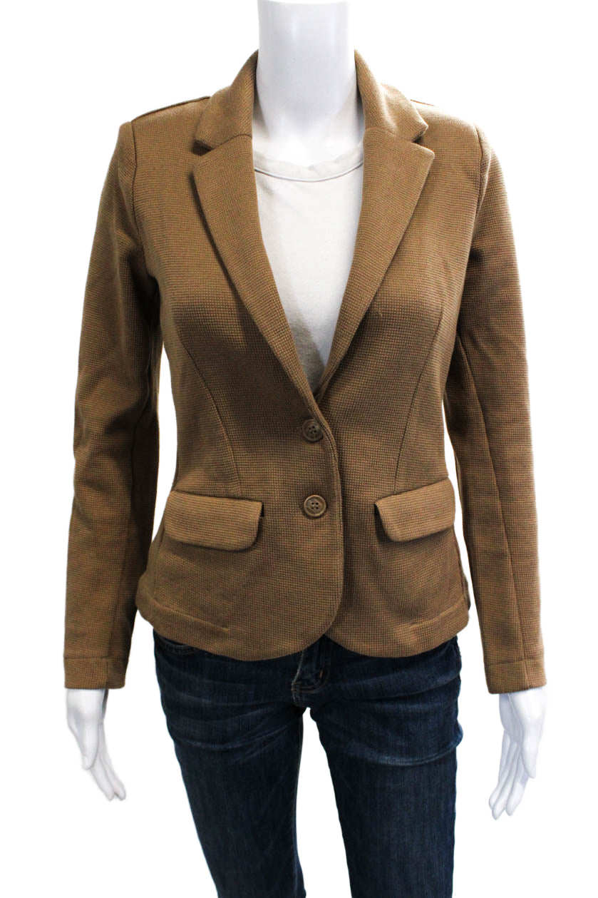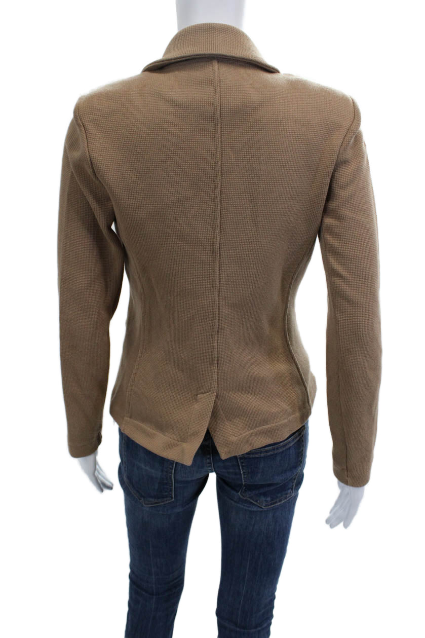 Whistles Women Brown Cotton Collared Solid Button Blazer Long Sleeve Size 0