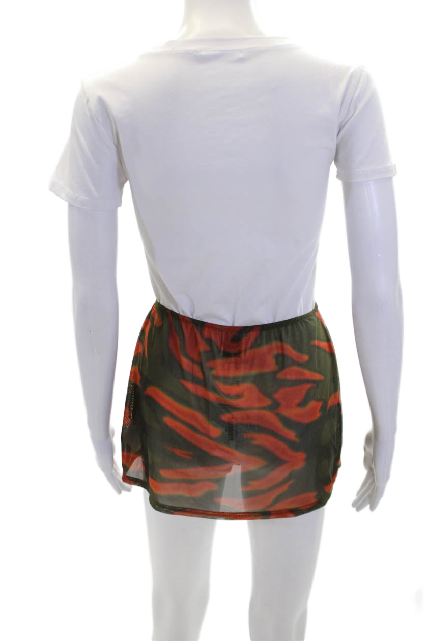 With Jean Womens Sheer Abstract Print Elastic Waist Mini Skirt Orange Size M