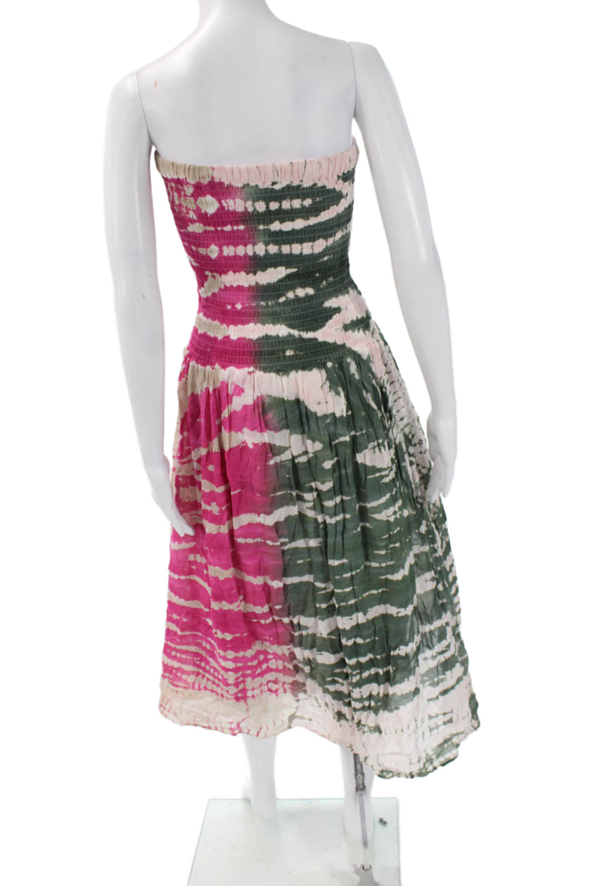 YFB Women A-Line Sundress Green Striped Viscose Sleeveless Full-Length Size XS