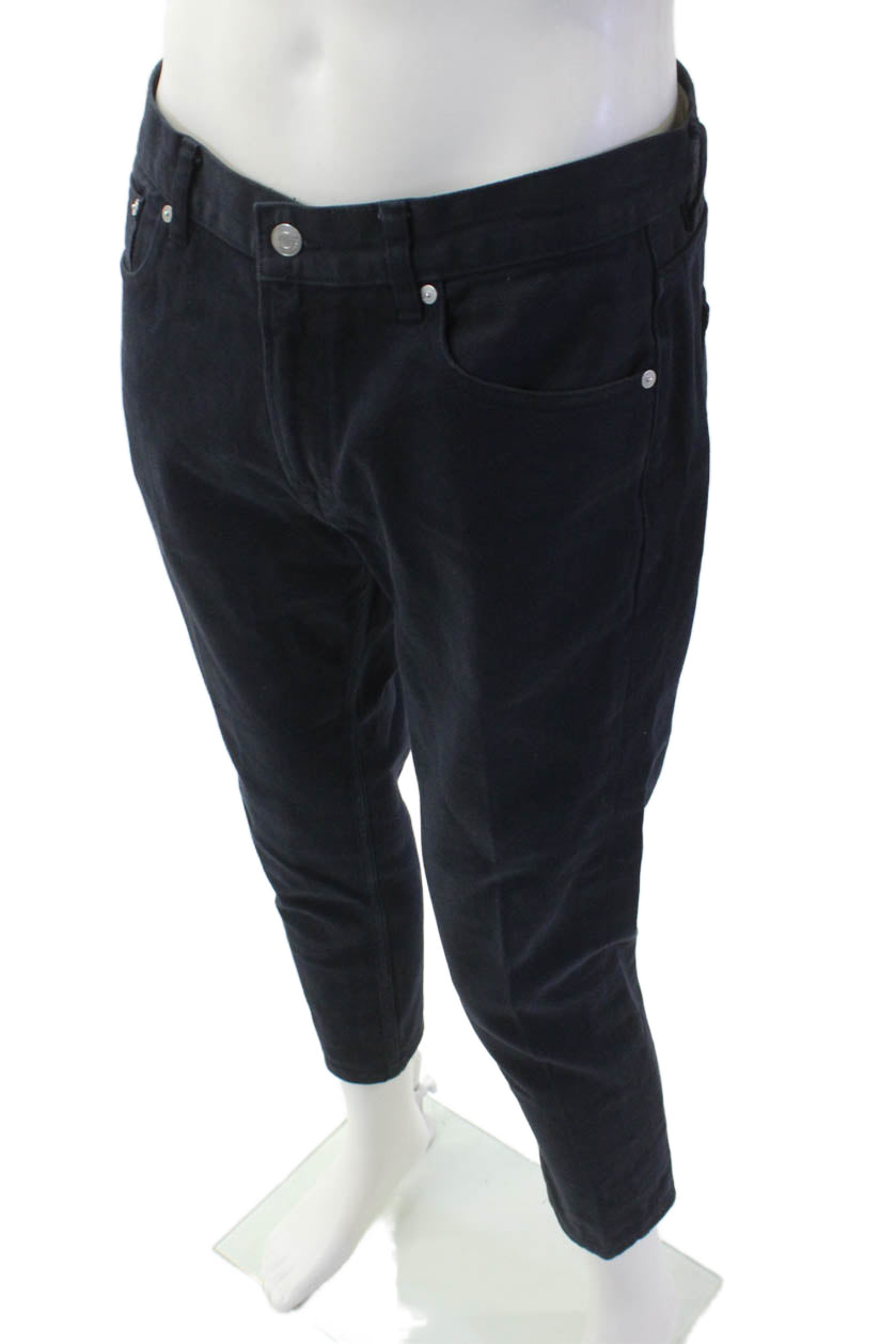 Zara Mens Cropped Ankle Pants Dark Blue Button Cotton Blend Size 31