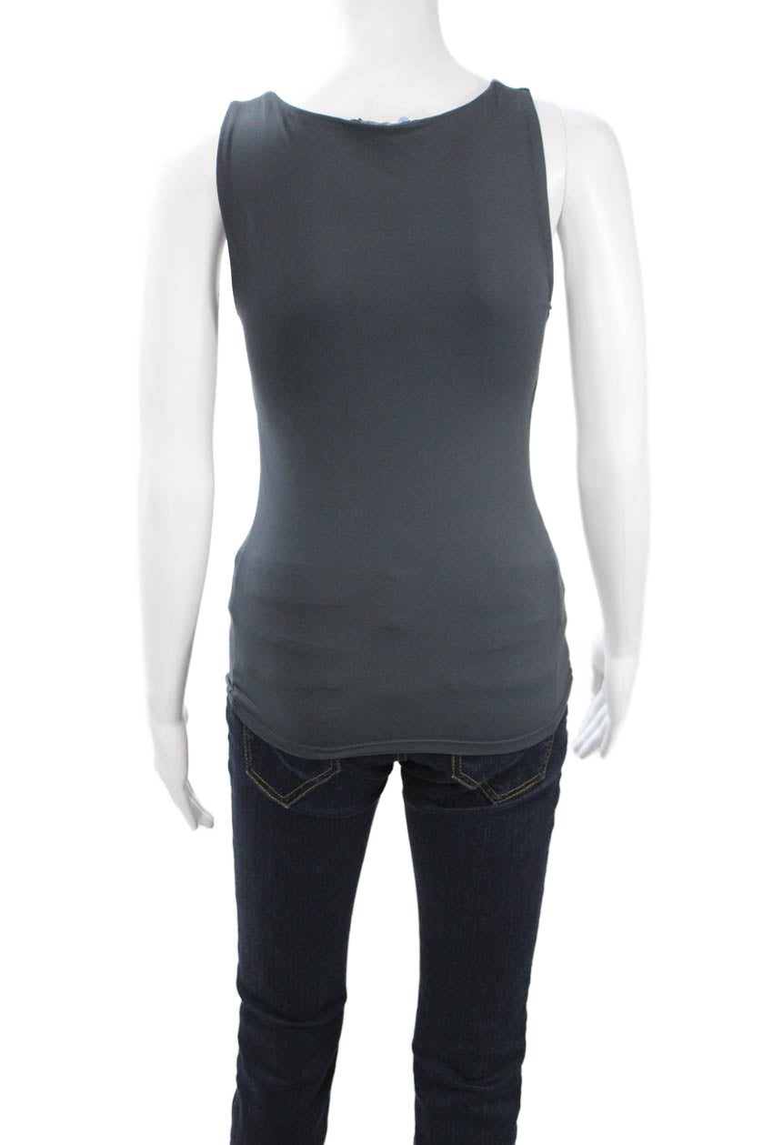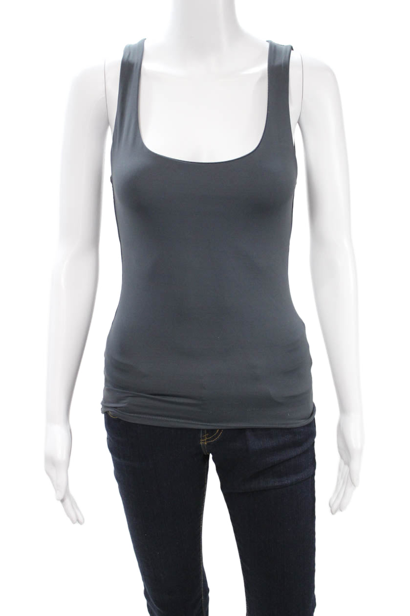 Zara Women Basic Dark Gray Tank Square Neck Cotton Size S