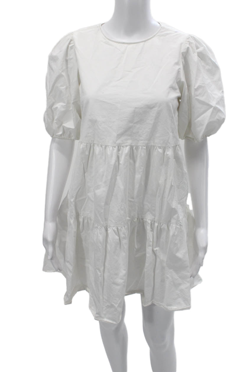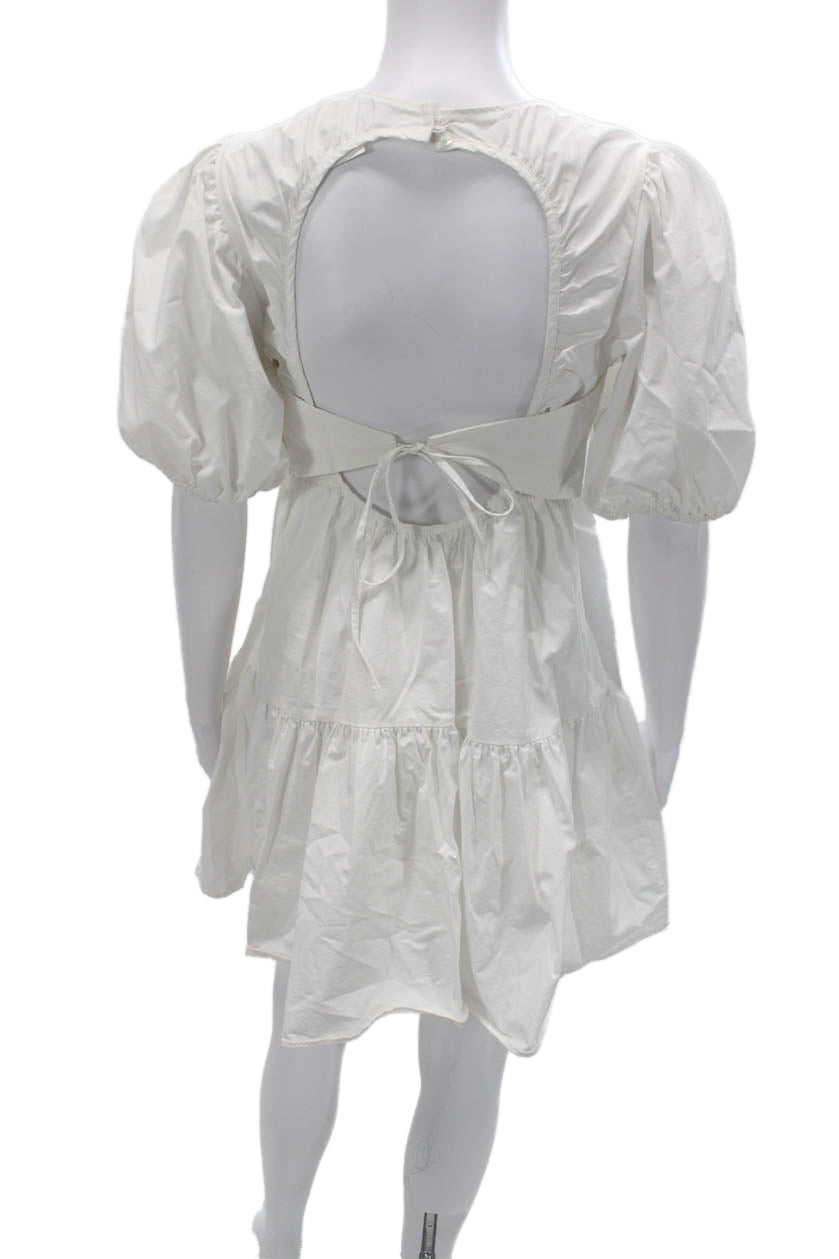 Zara Women Boho Trapeze Swing Mini Dress White Round Neck Short Sleeve Size S