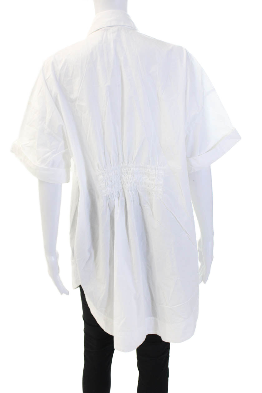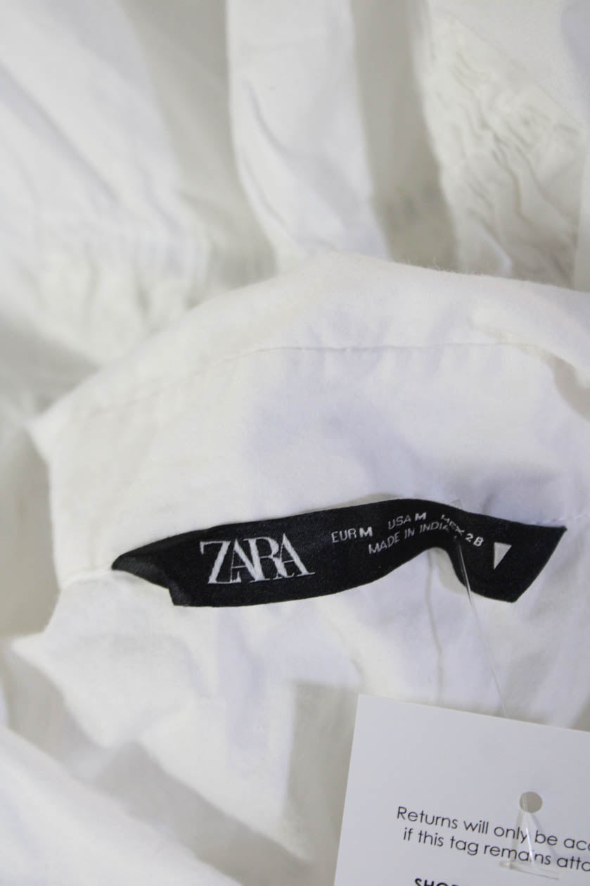 Zara Women Collared Cotton Button Up Tunic Short Sleeve White Size M