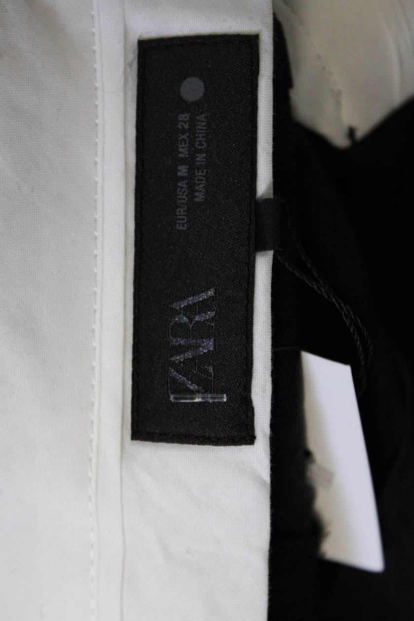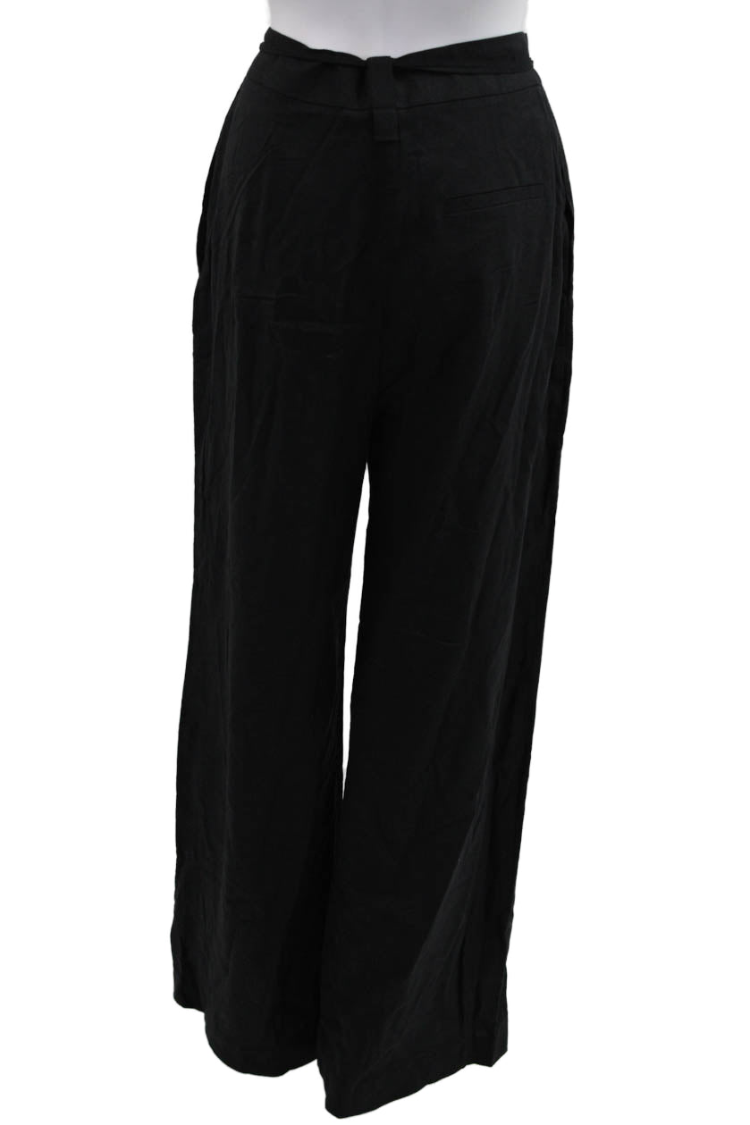 Zara Women Dress Pants Black Drawstring Linen Viscose Size M