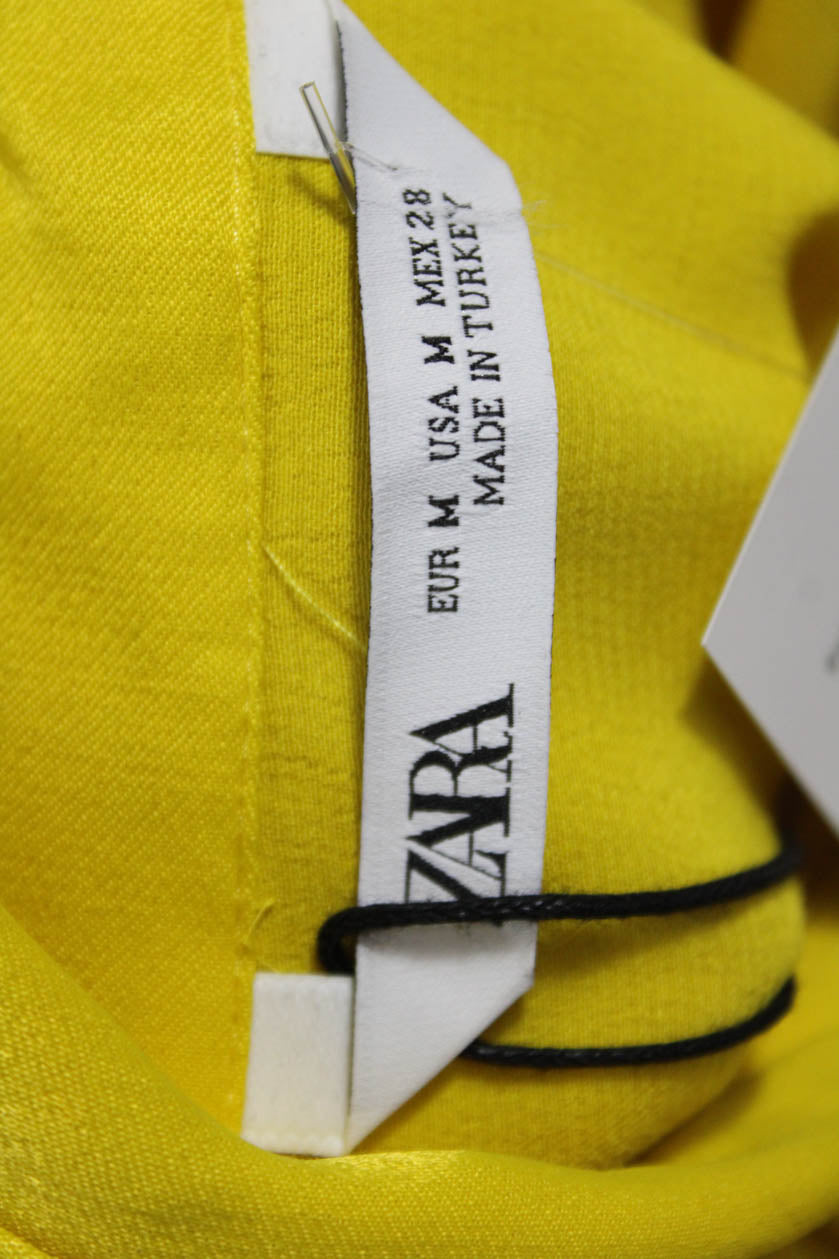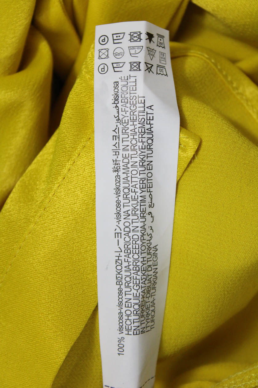 Zara Women High Neck Button Up Yellow Viscose Long Sleeve Blouse Size M