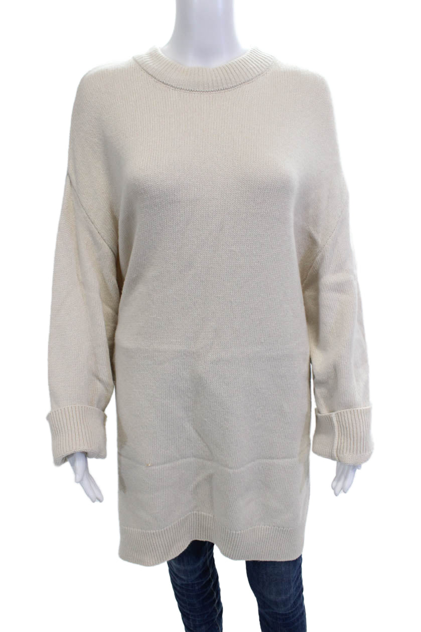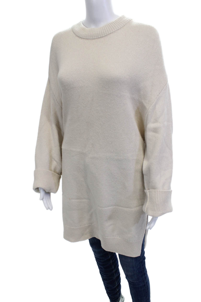 Zara Women Pullover Sweater Beige Crew Neck Long Sleeve Cotton Acrylic Size M