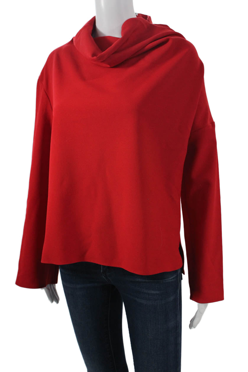 Zara Women Red Mock Neck Long Sleeve Blouse Size S