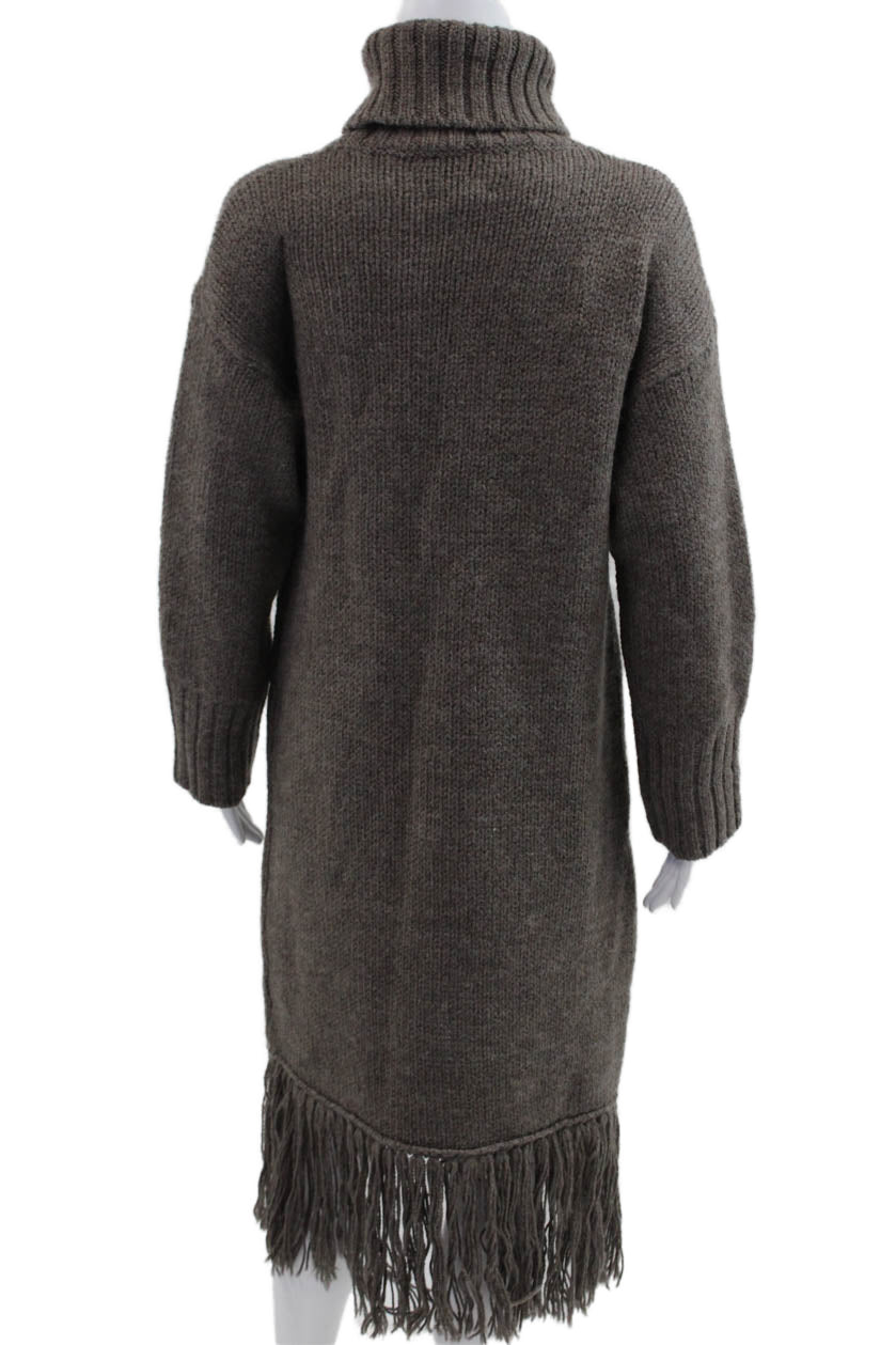 Zara Women Sweater Dress Brown Turtleneck Long Sleeve Knee Length Wool Size XS