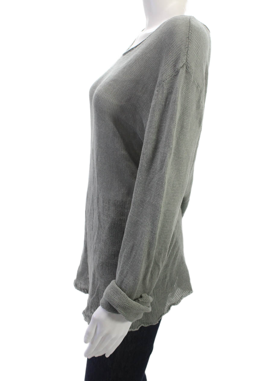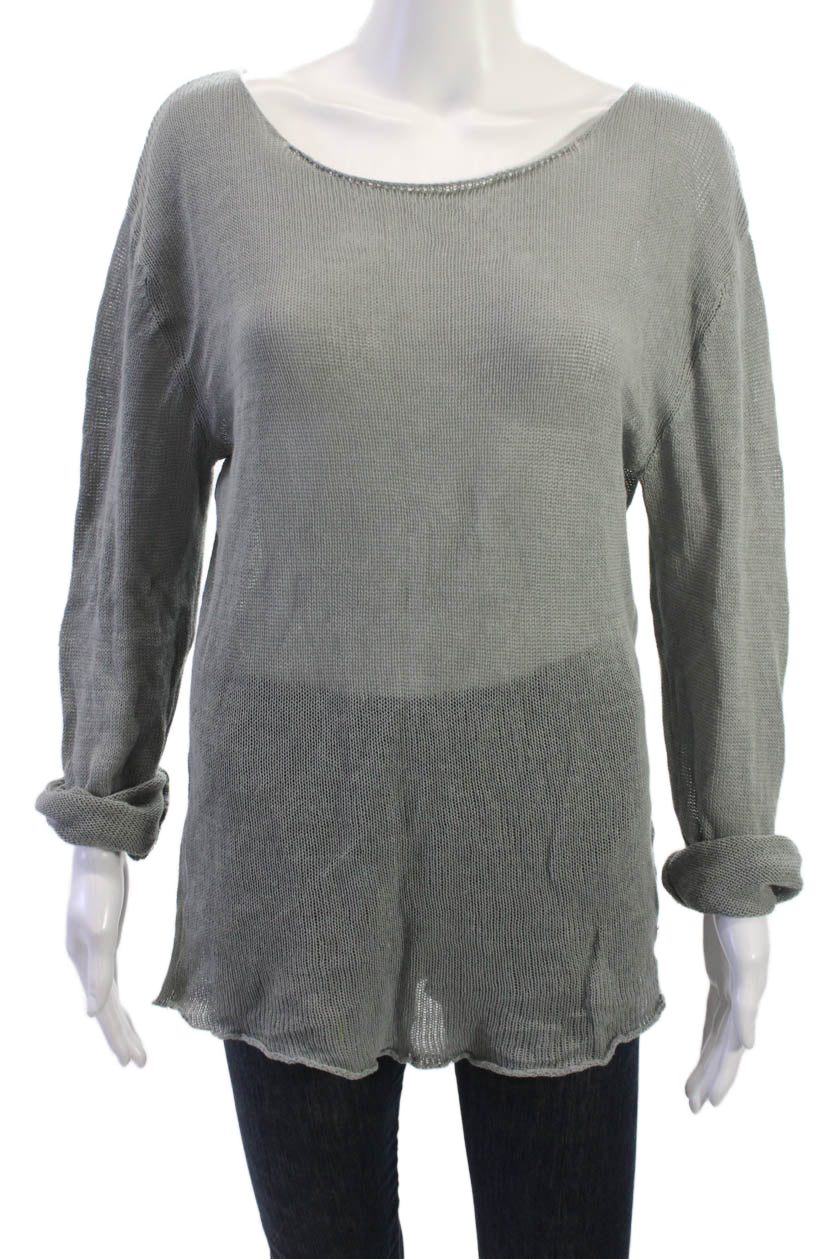 Zara Womens Basic Long Sleeve Round Neck Gray Polyester Top Size L