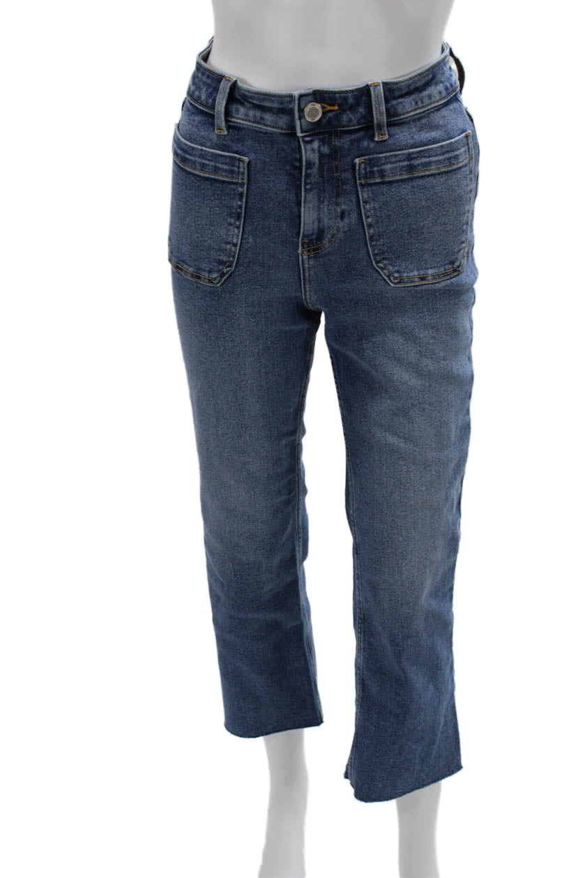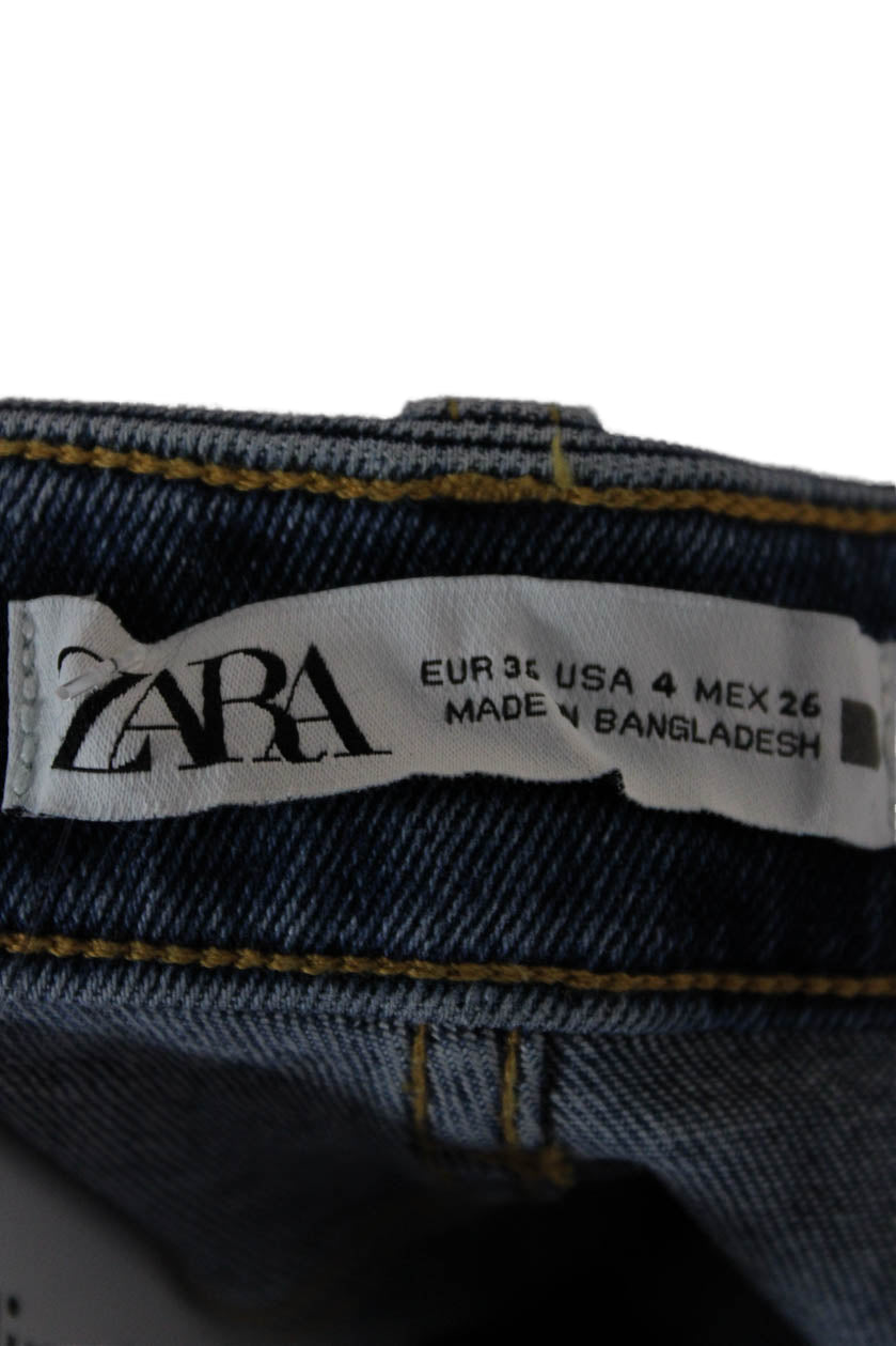 Zara Womens Cropped Mom High Rise Blue Cotton Jeans Size 4