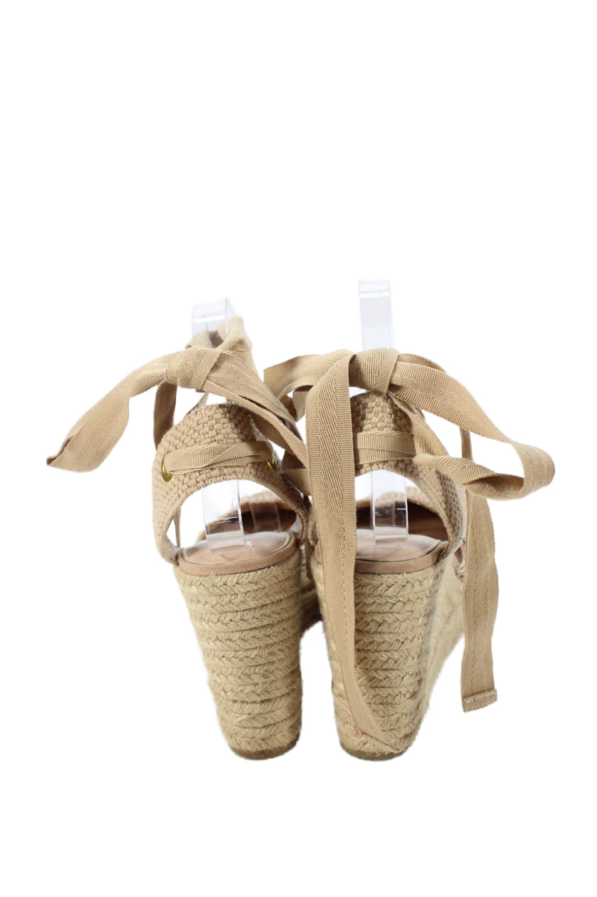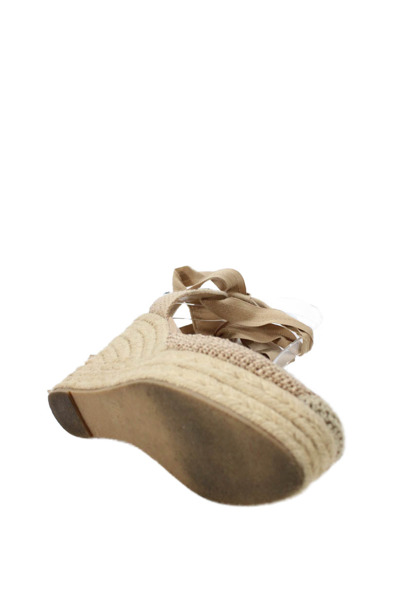 Zara Womens Lace-Up Round Toe Platform Wedge Sandals Beige Size 8