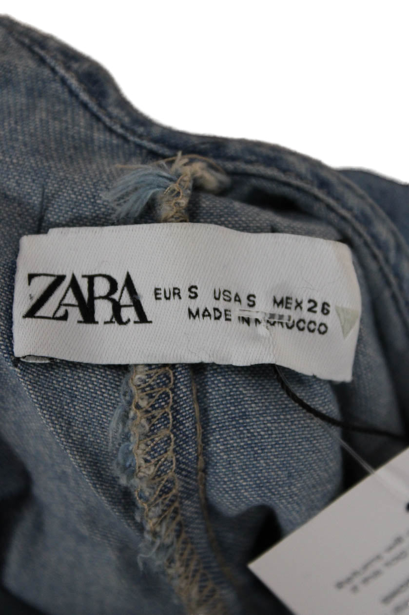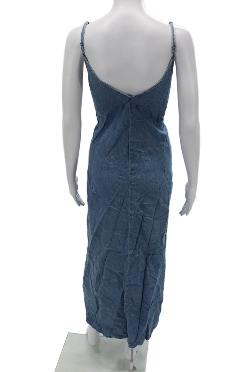Zara Womens Maxi Slip Dress Blue V Neck Sleeveless Cotton Mid Calf Size S